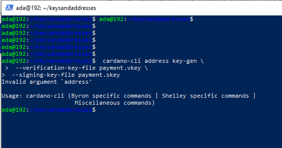 Keep in mind that the exact invocation command depends on the enviornment. If you only have cardano-cli bult, without installing it, then you have to prepend cabal run -- before cardano-cli. From now on we'll just assume that the necessary enviornment-specific adjustment has been made. Now you'll only have to mention cardano-cli.